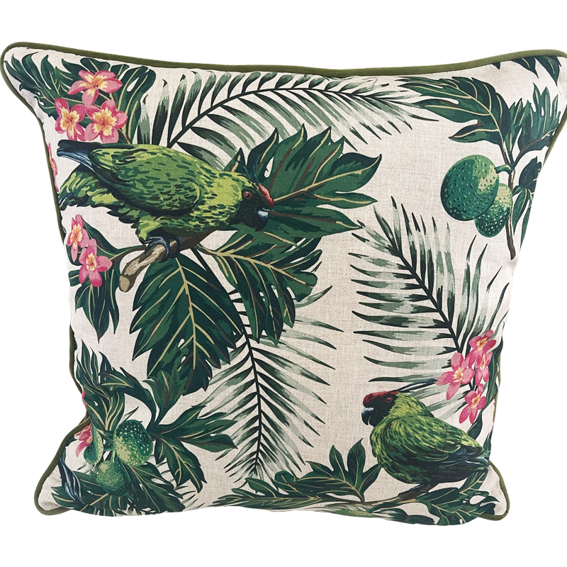 Exclusive design Scatter Cushion. Green Parrots with Pink